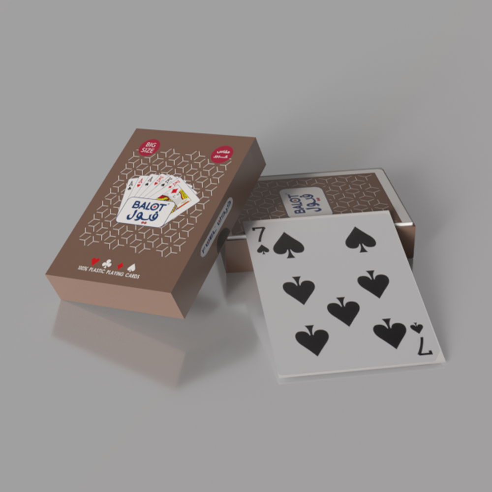أضف حيوية وأناقة لألعاب الورق الخاصة بك مع حبة بلوت فيول الأصلي بيج مقاس كبير، المصنوعة من بلاستيك فاخر 100% يضمن المتانة وطول العمر. تصميم البطاقات الكبير يسهل رؤية التفاصيل الجميلة، واللمسة الناعمة تجعل اللعب والخلط سهلًا ومريحًا. هذه البطاقات العصرية تضفي رونقًا فريدًا على ليالي اللعب سواء في البلوت أو غيره من الألعاب الورقية.